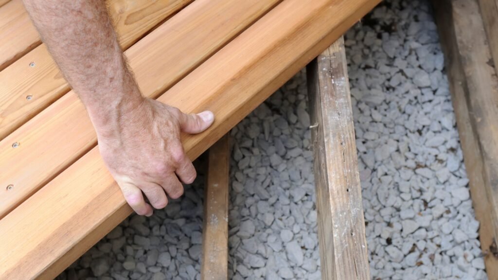 • Joists: These run perpendicular to the bearers and hold the decking boards. Make sure they are straight, treated, and properly spaced.